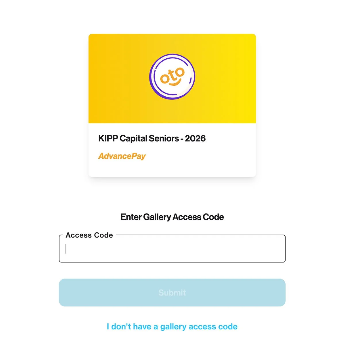 Enter the access code provided by the school, flyer, email, or photographer.